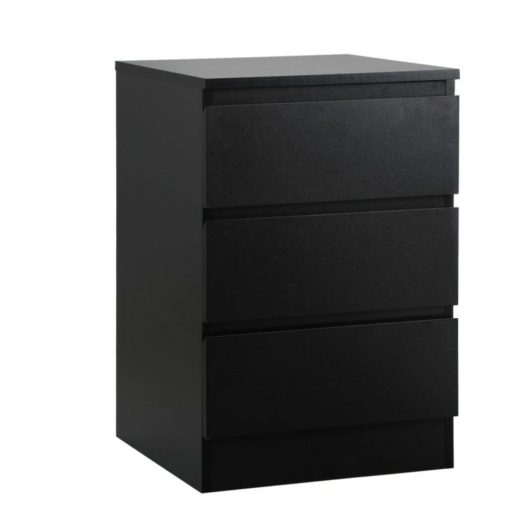 NNEED Bedside Table 3 Drawers Storage Cabinet Black