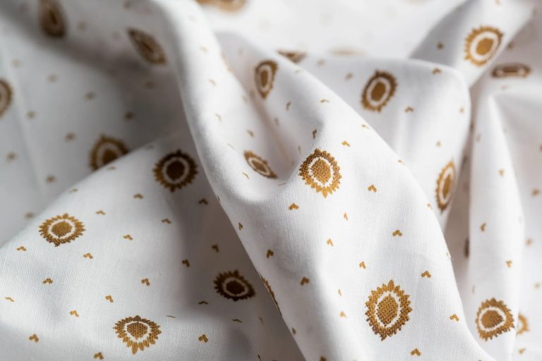 Lantern Print Hemp Fabric | White & Gold | Organic | 145gsm | 147cm Wide