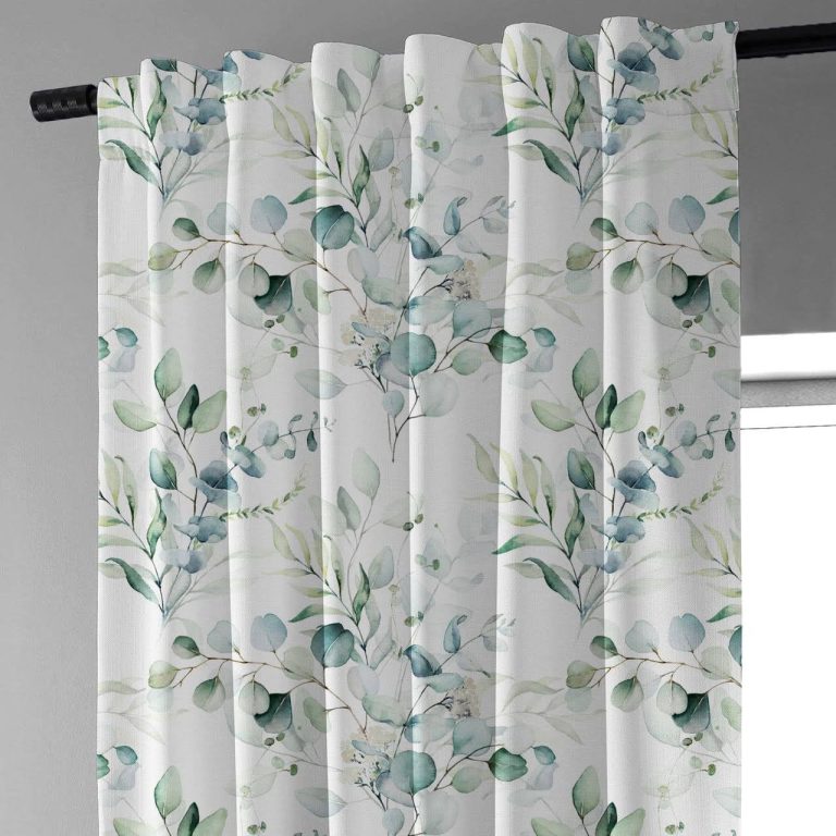 Linen Eucalyptus Curtains UK – Watercolor Leaf Print Light Filtering or Blackout