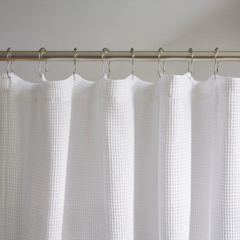 Navy Blue Organic Cotton Waffle Shower Curtain | Mold Resistant | Quick Dry