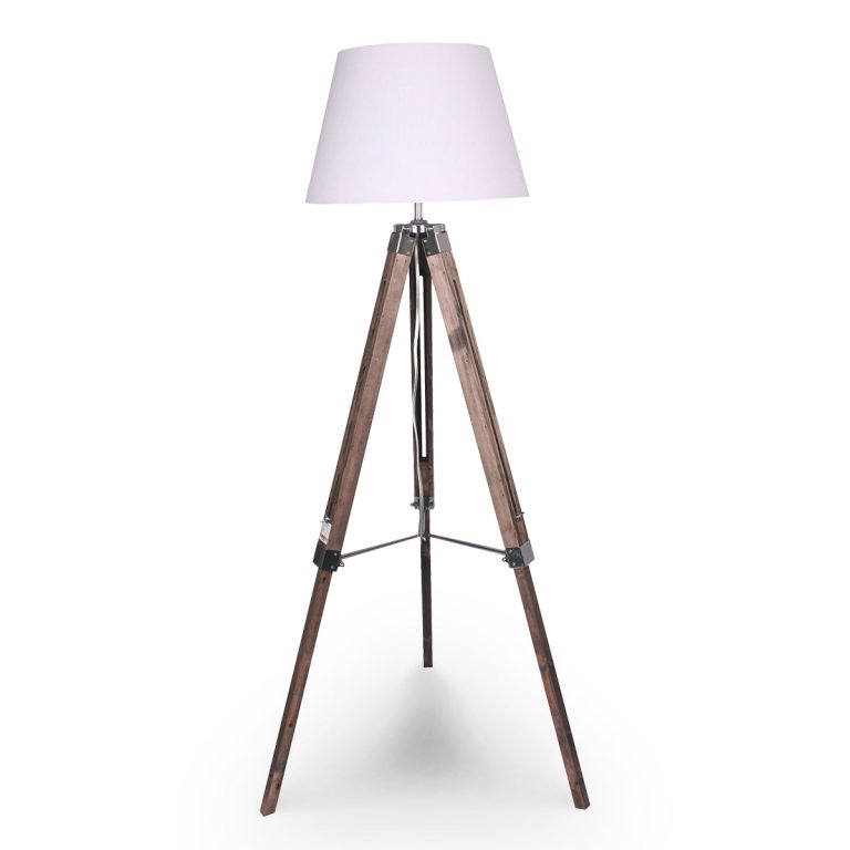 NNEDPE Sarantino Solid Wood Tripod Floor Lamp Adjustable Height White Shade