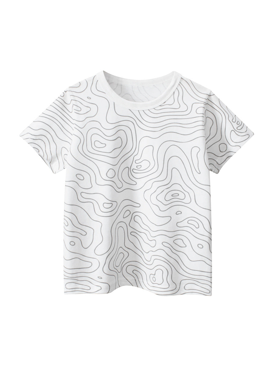Boys’ Geometric Pattern Printed Casual T-shirt in European and American Style
