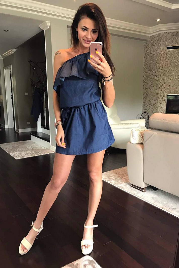 Dress worn on one arm with elastic waist.