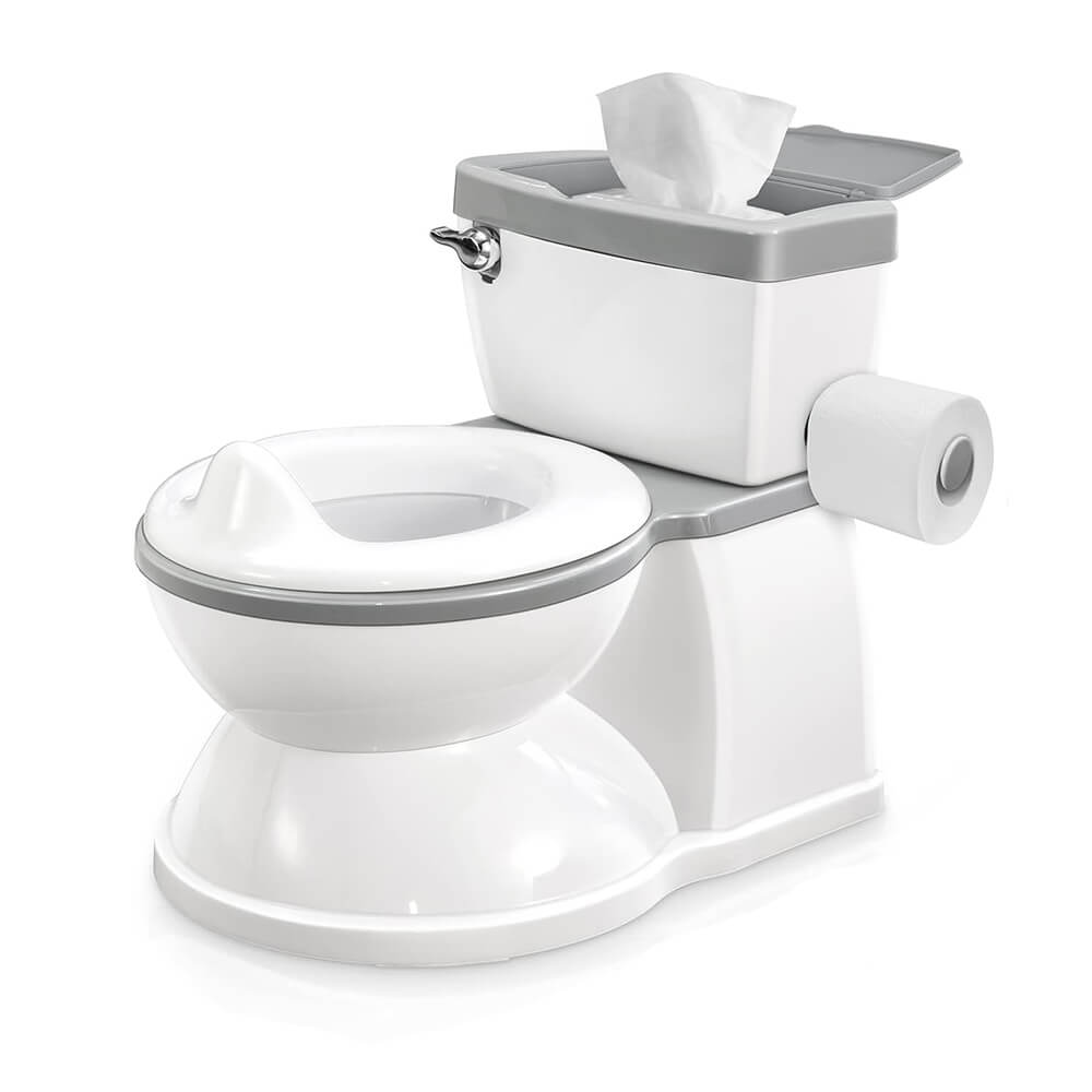 Pomóż dziecku w nauce czystości dzięki realistycznemu nocnikowi w kształcie WC! Dźwięk spłuczki, uchwyt na papier, łatwe czyszczenie i kompaktowy design.