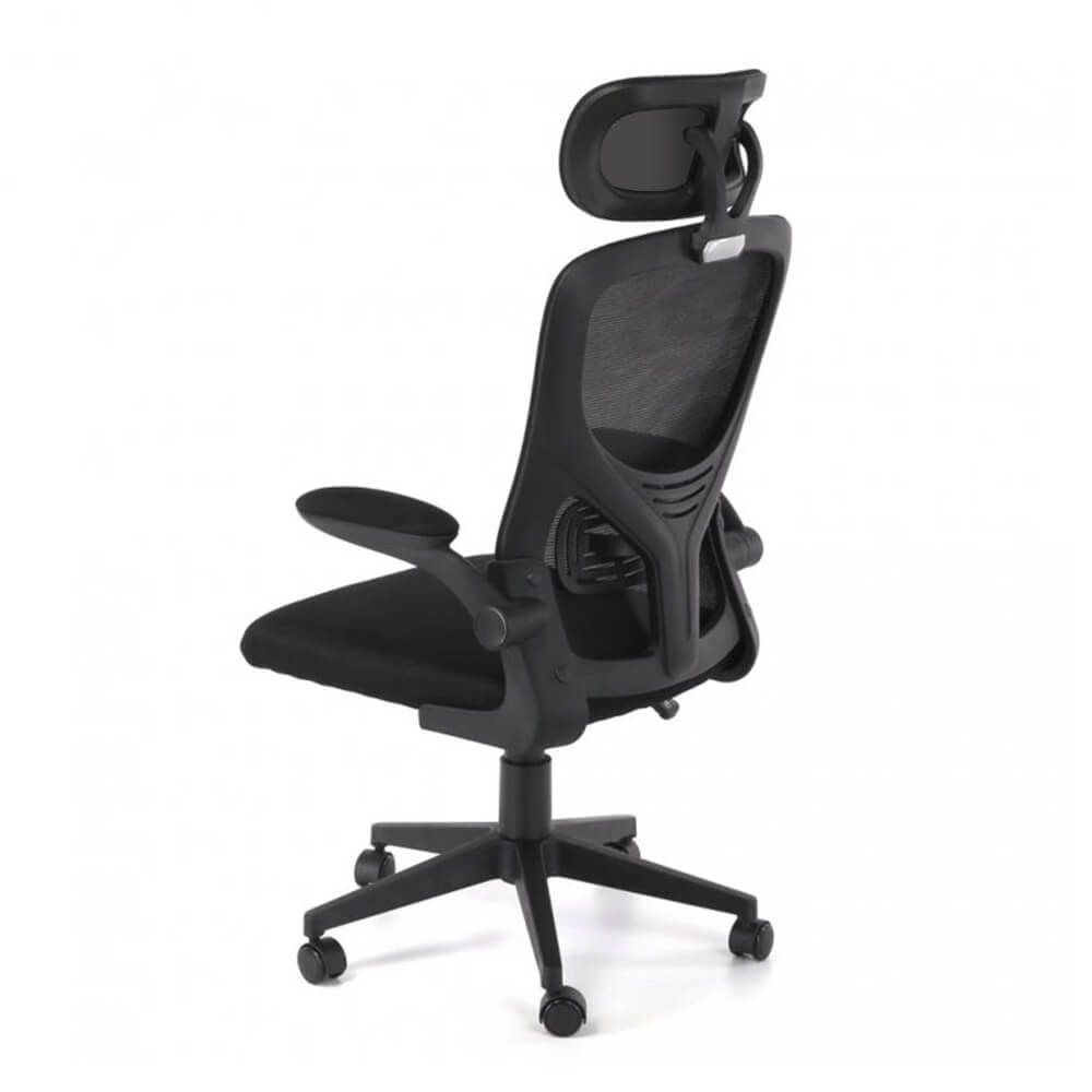 Ergonomiczny fotel biurowy z podparciem lędźwiowym i zagłówkiem, czarny