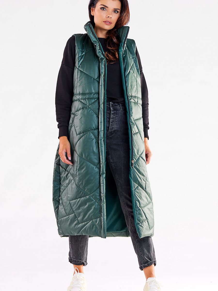 A vest with a streamlined, oversized cut is the perfect choice for cool autumn days. Its original shape can be the basis for creating many interesting stylizations. Zippered, additionally tightened at the waist allows to adjust it to any type of silhouette. The vest is fully lined.