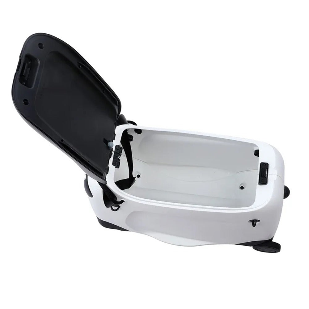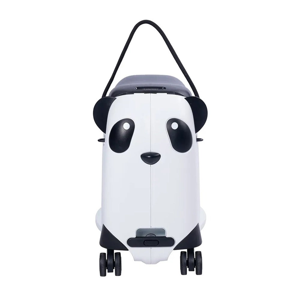 Vidám és praktikus gyerekbőrönd panda mintával. Húzható, ráülhető, könnyű – ideális háztartási kellék utazáshoz és játékhoz.