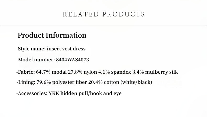Natural and delicate mulberry silk and smooth modal blended fabric, comfortable and elastic, slimming, skin-friendly and easy to care for, design sense, ripped insert shape, smooth and elegant U-neck, creating a simple and elegant aesthetic, skin-friendly and natural texture, natural and smooth tailoring, showing a relaxed and casual feeling.