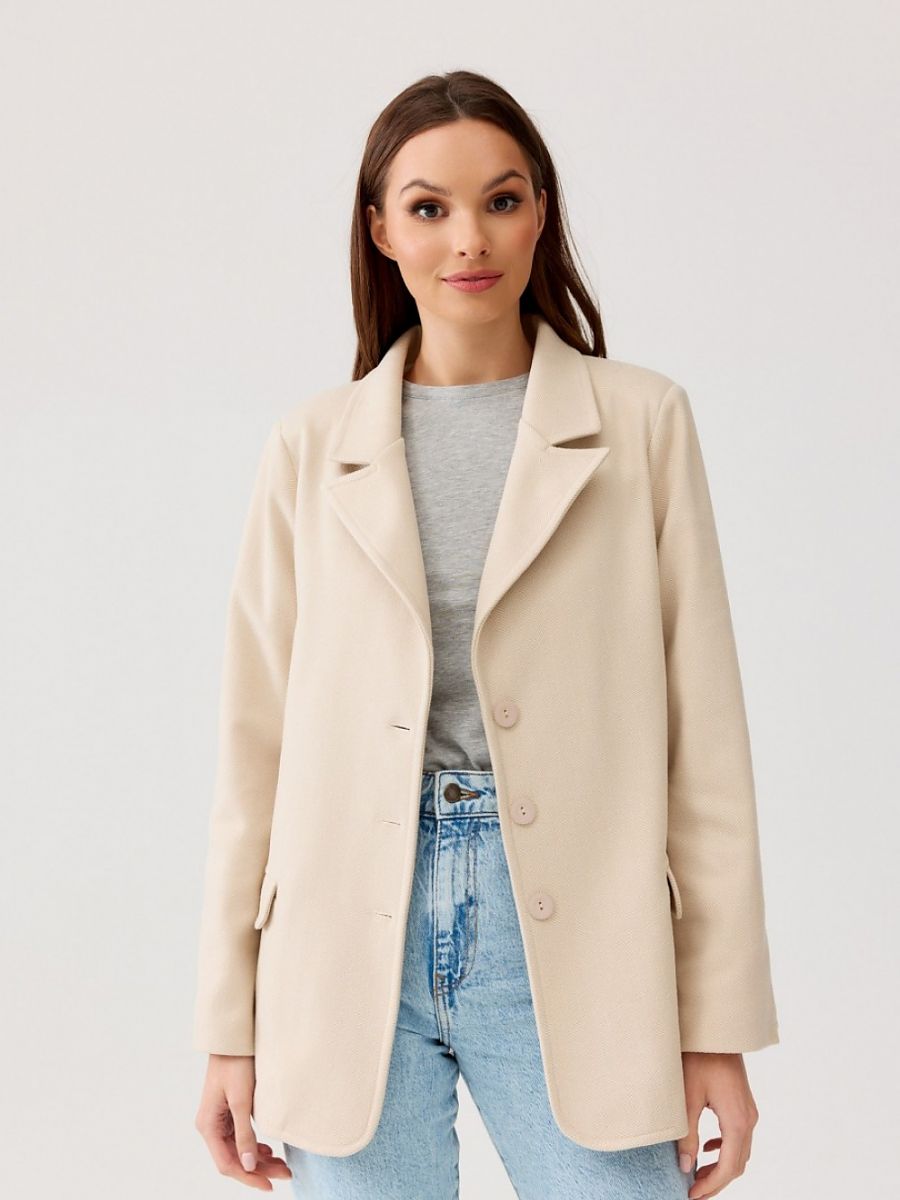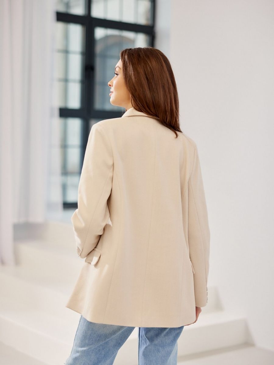 The Freya jacket is a classic standard-length blazer that draws attention with its extremely careful finishing. Note its details, such as the unique herringbone fabric, as well as the classic collar and long sleeves decorated at the end with three buttons. In addition, two flap pockets located on the side of the jacket add functionality and a fashionable look. A convenient button closure through the middle with three single-row buttons makes wearing this jacket extremely comfortable. The thin lining and shoulder pads ensure a perfect fit, adding character to the feminine silhouette. Thanks to its timeless design, our jacket is suitable for many occasions. You can wear it to formal events, family celebrations or business meetings. However, not only for such occasions will this styling work. Paired with jeans and a t-shirt, the blazer is an excellent choice for more casual meetings. For an elegant look, we recommend pairing the blazer with a classic cut white shirt and black pants or smart pants. If you prefer a casual look, you can combine the jacket with well-tailored jeans and a simple white t-shirt.