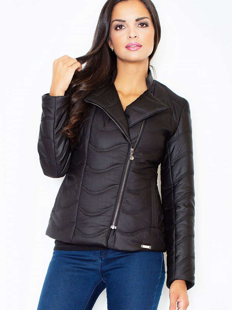 Short, quilted jacket a la ramoneska, lined. A diagonal zipper, two pockets at the front. Adjusts perfectly to the body. Decorative plaque on the side. Very light and warm, perfect for the coming season.