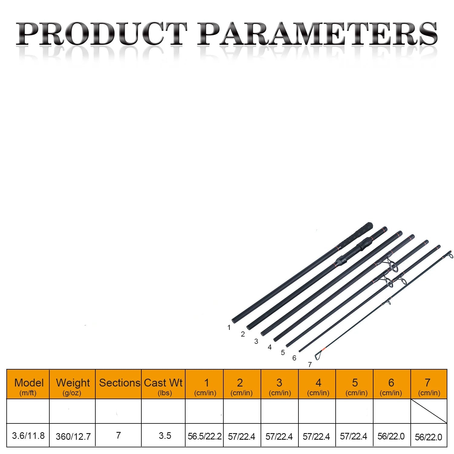 NNEOBA 3.6M Portable Carbon Fiber Carp Spinning Rod Black