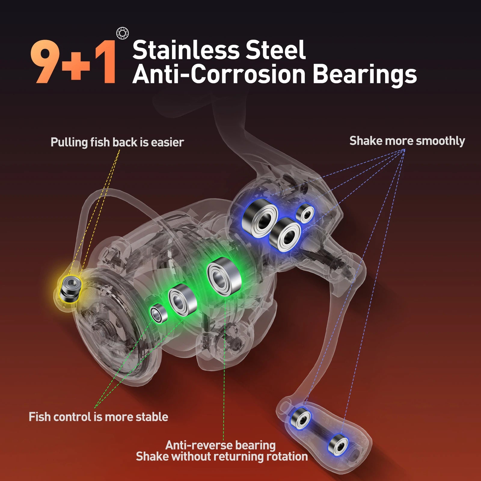 • 9+1 Bearing System: Ultra-smooth operation with anti-reverse control