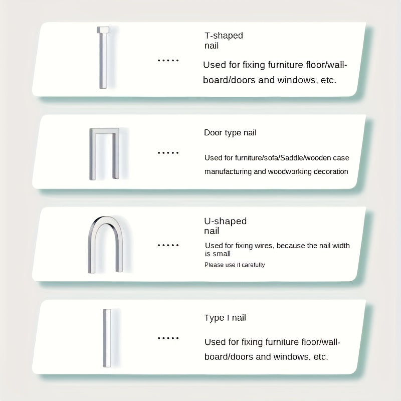 Includes: 3 types of nails (600 nails)