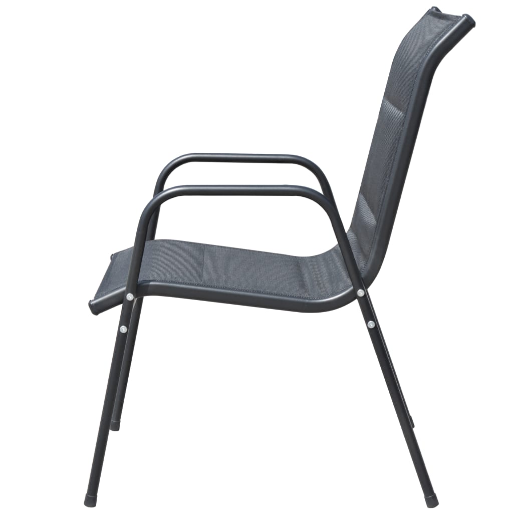 This contemporary stackable chair set is meant to be a real eye-catcher in your garden, dining room or patio. The comfortable armchairs have a powder-coated steel construction, making it sturdy and stable. Thanks to the strong Textilene fabric with waterproof padding, these outdoor chairs are highly comfortable, weather-resistant and easy to clean. The chairs can also be stacked to save space when not in use. In addition, the padded seat provides added comfort. Take a load off and enjoy your outdoor living space on these comfortable and durable garden dining chairs!