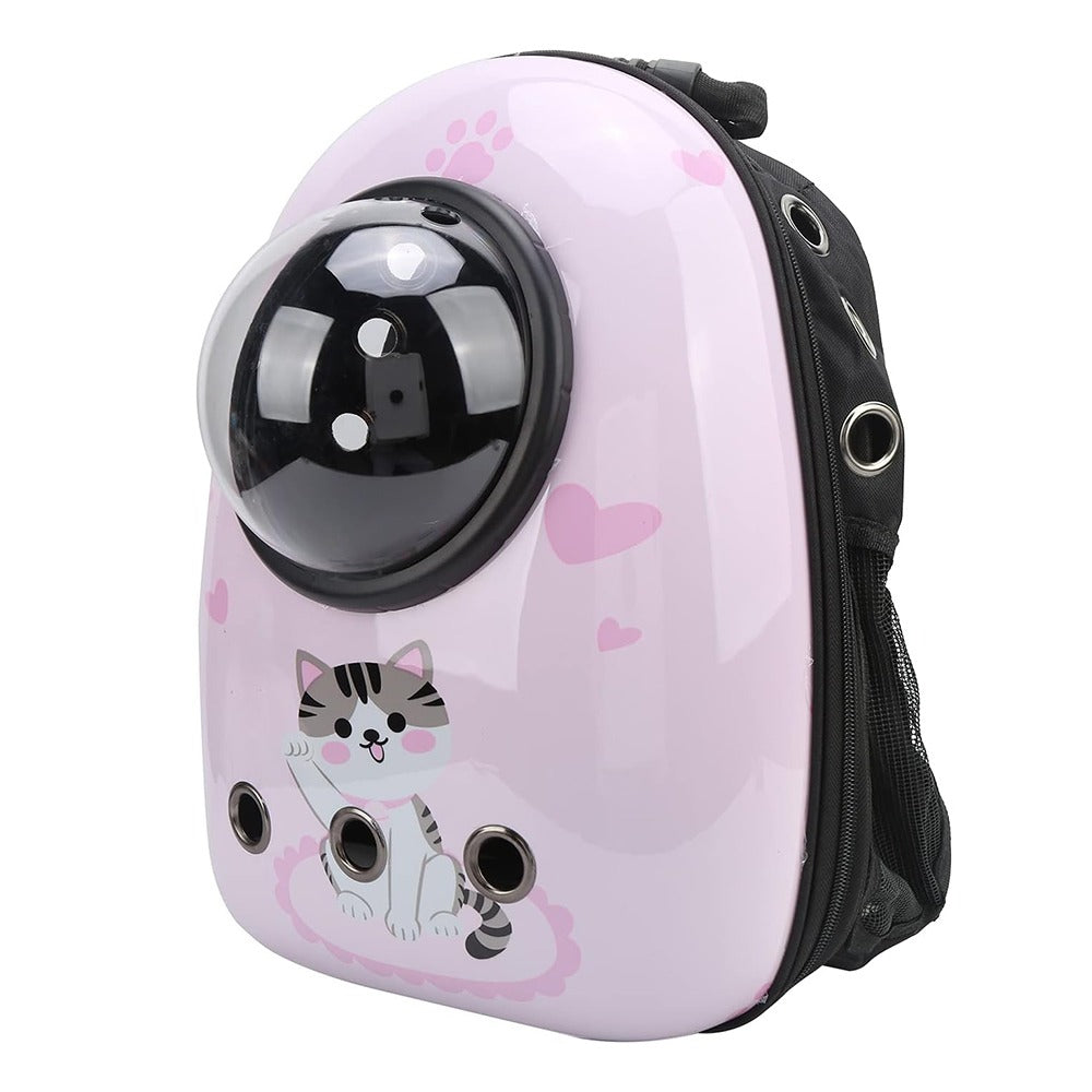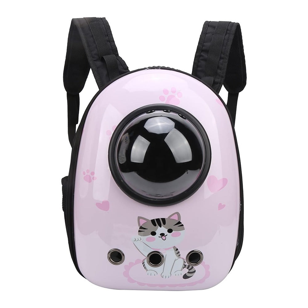 Nowoczesny plecak do noszenia kotów i małych psów z otworami wentylacyjnymi, przezroczystym okienkiem z pleksi i wyściełanymi paskami na ramiona dla wygodnej podróży.