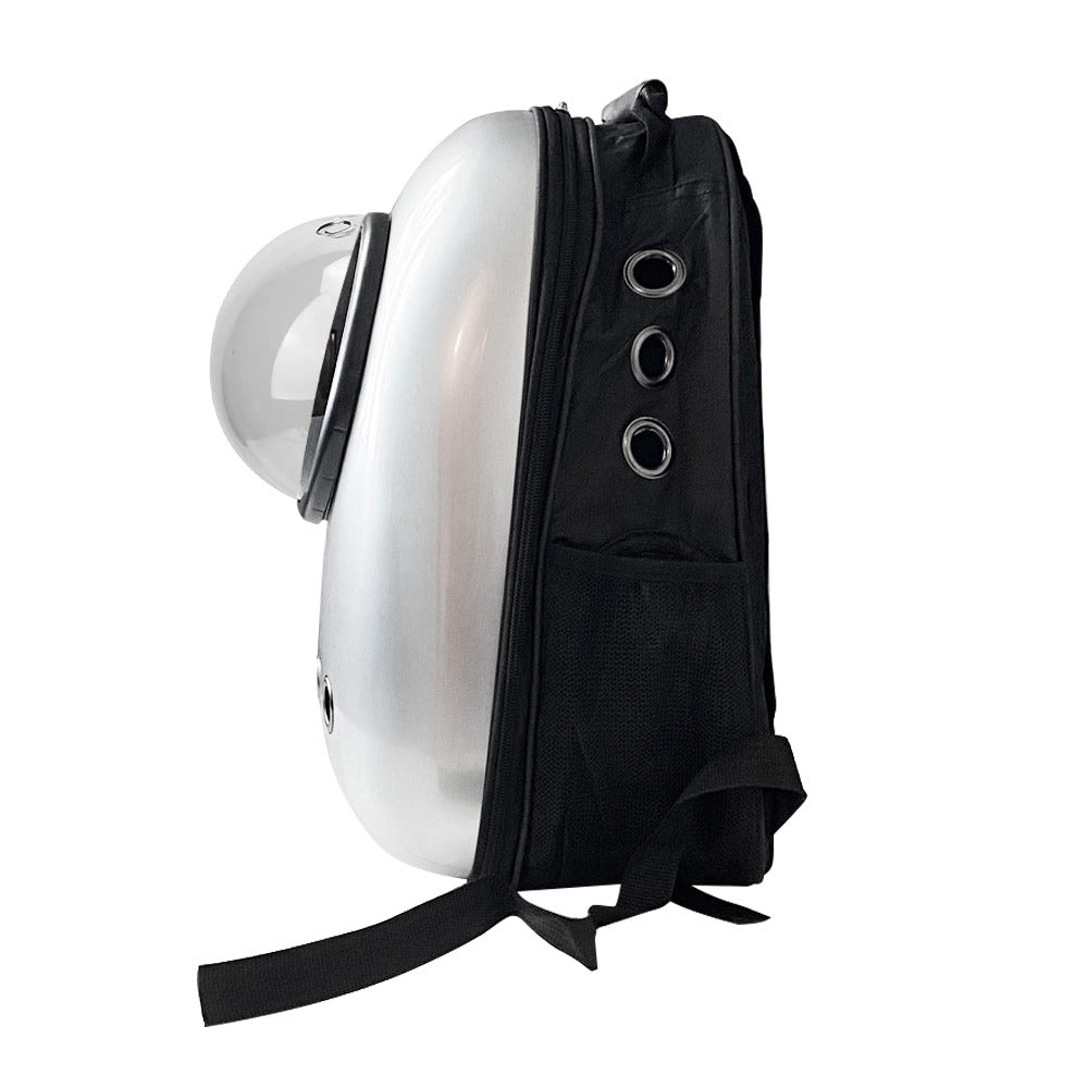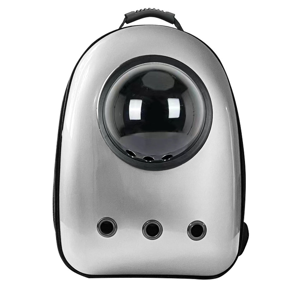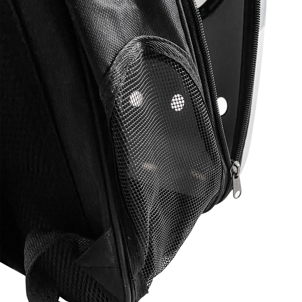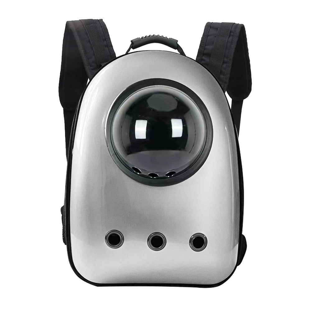 Nowoczesny plecak do noszenia kotów i małych psów z otworami wentylacyjnymi, przezroczystym okienkiem z pleksi i wyściełanymi paskami na ramiona dla wygodnej podróży.