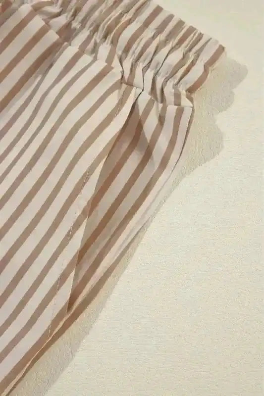 Discover the perfect blend of style and comfort with our Safari Chic Trousers. Featuring a bold khaki stripe, wide leg fit, and convenient drawstring waist for the ultimate in casual elegance.