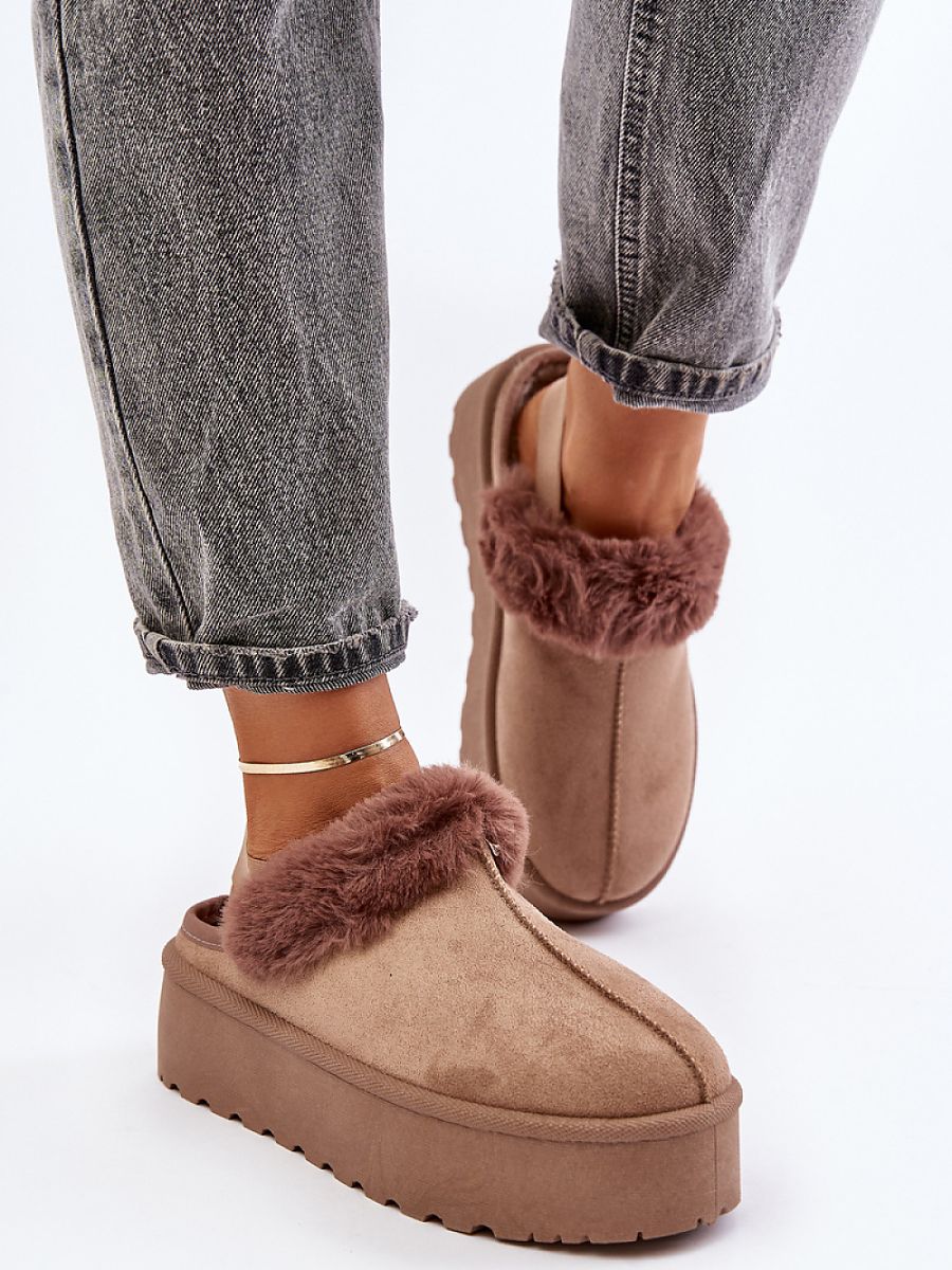 Women’s eco-suede slippers are a comfortable and stylish option for cold days. Set on a platform, they provide comfort and lightness, and their fur-insulated interior guarantees warmth and coziness. The model with an open heel is equipped with an elastic band, which facilitates the fit and makes the slippers easy to put on. Ideal for wearing indoors and outdoors.