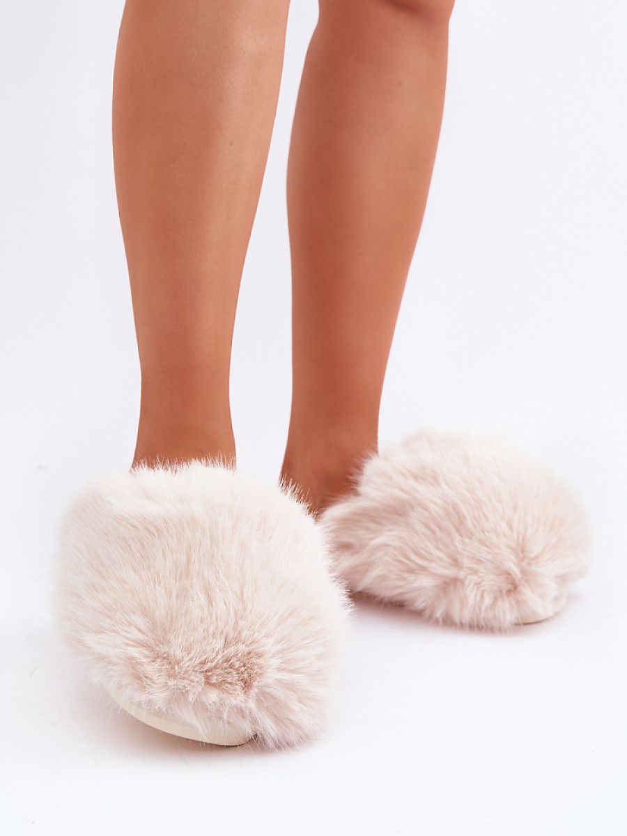 Stylish women’s slippers with fluffy, thick fur that wrap the feet in warmth and comfort. The model with covered toes provides additional protection against the cold. Perfect for winter evenings!