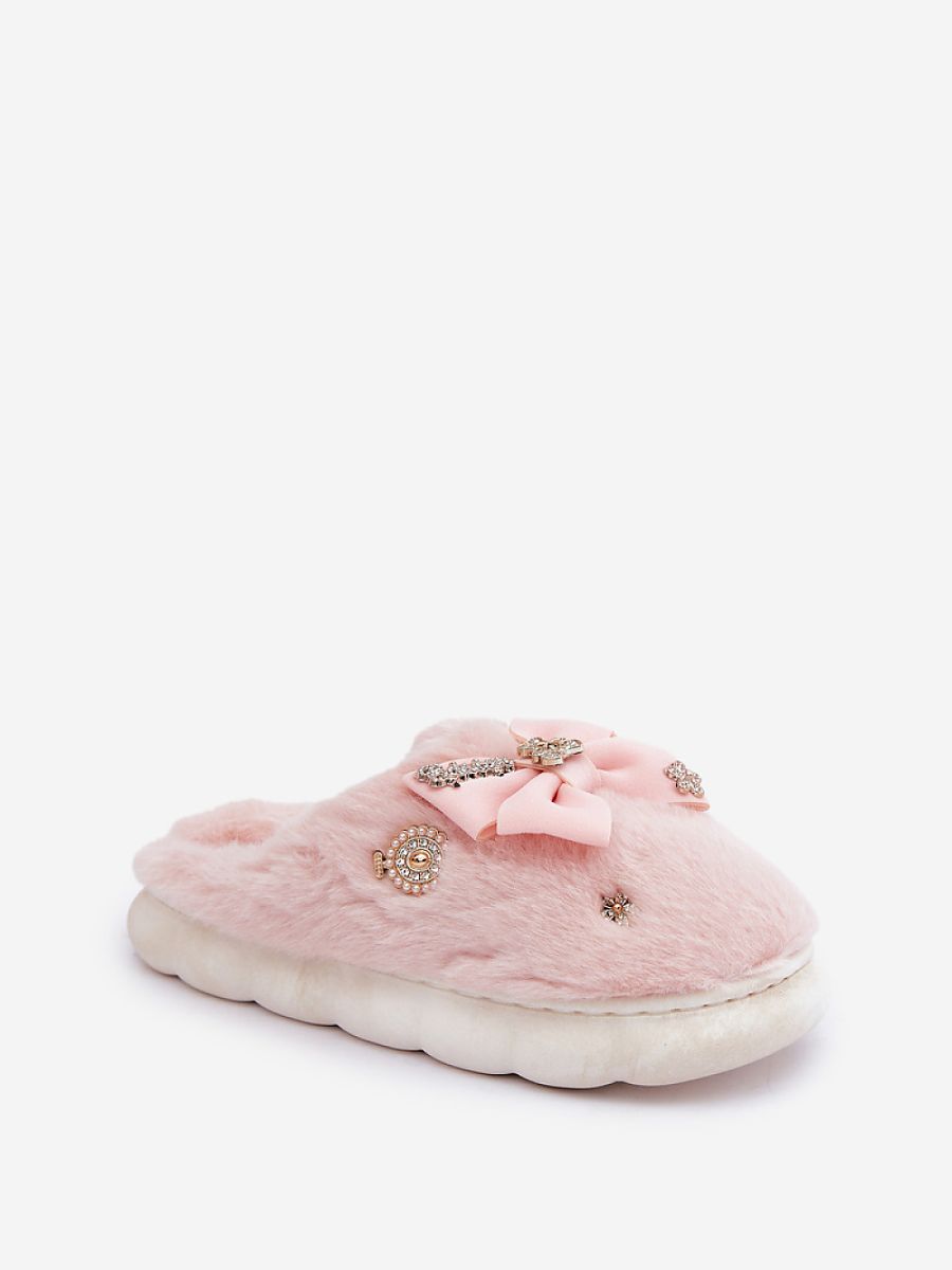 Charming furry slippers that combine comfort and style! Soft fur envelops the feet, providing warmth and comfort. Additional charm is added by buttons and a bow. Perfect for wearing at home to feel stylish and cozy even on cold days.