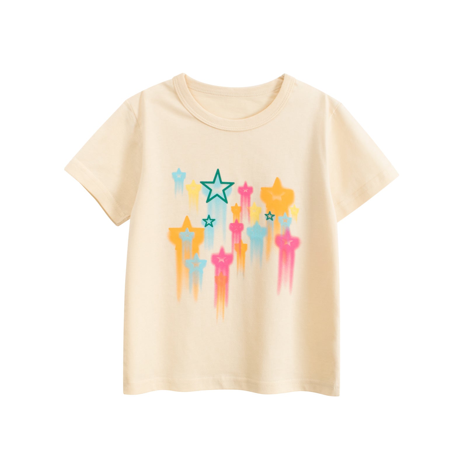 Summer Girls’ Colorful Stars Printed T-shirt in European and American Style