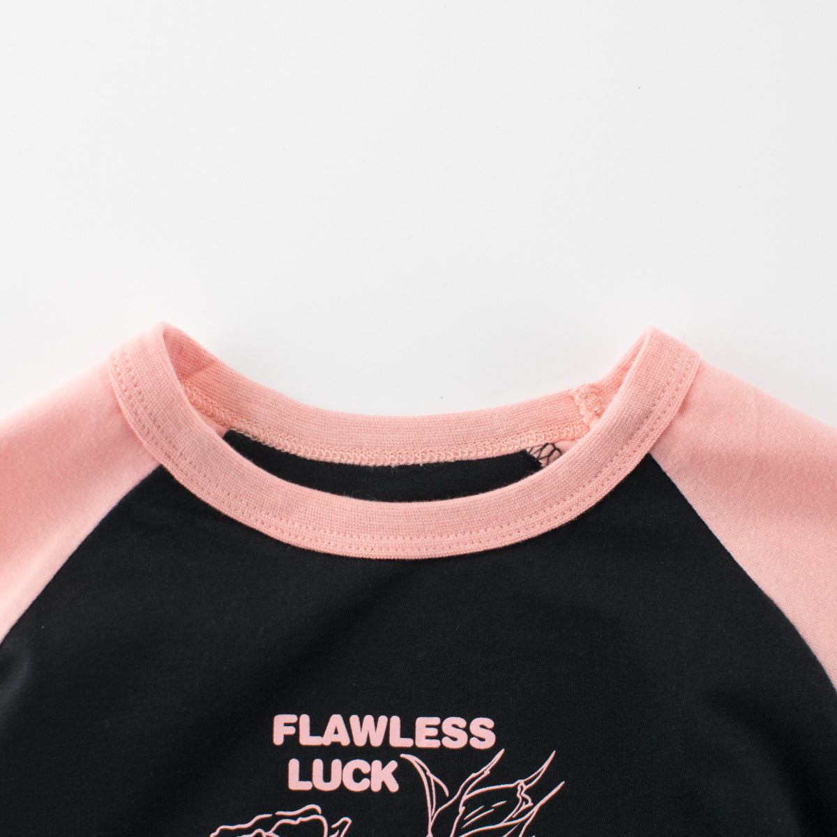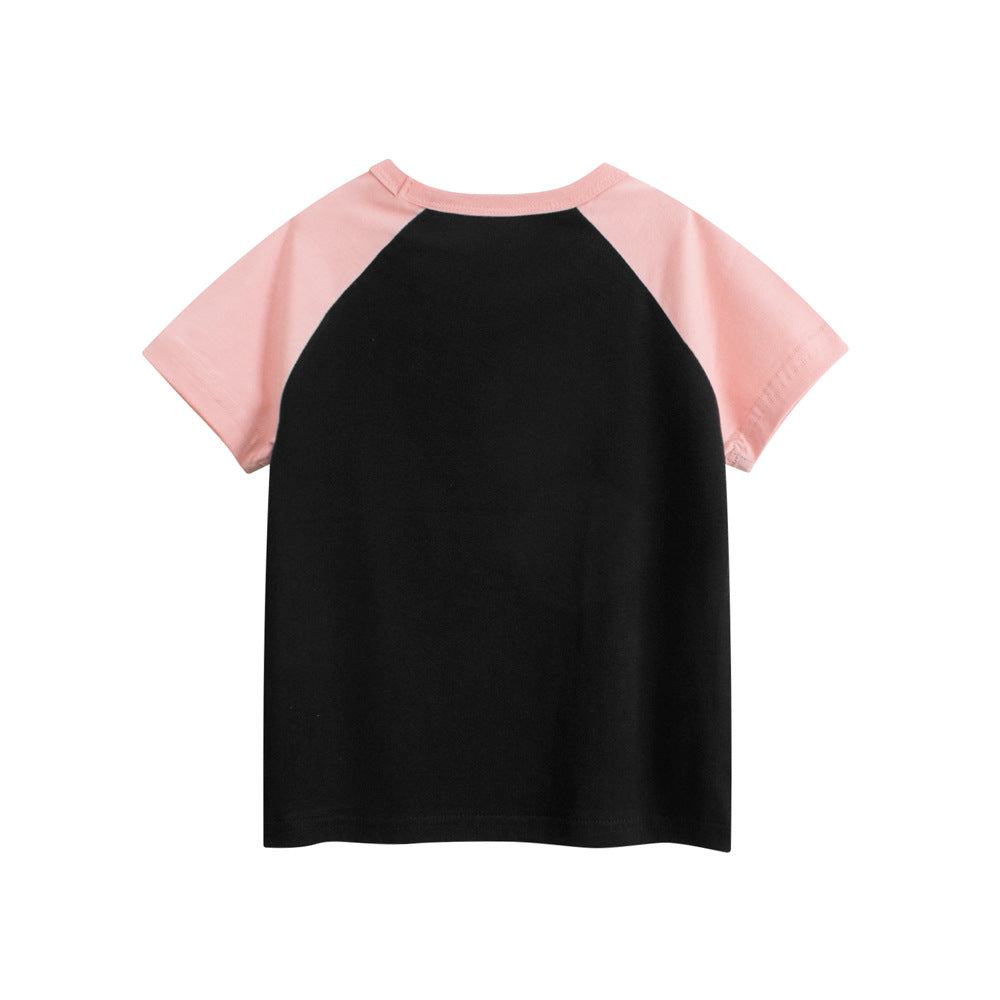 Summer Girls’ Flower and Letters Print Color Patchwork T-shirt in European and American Style